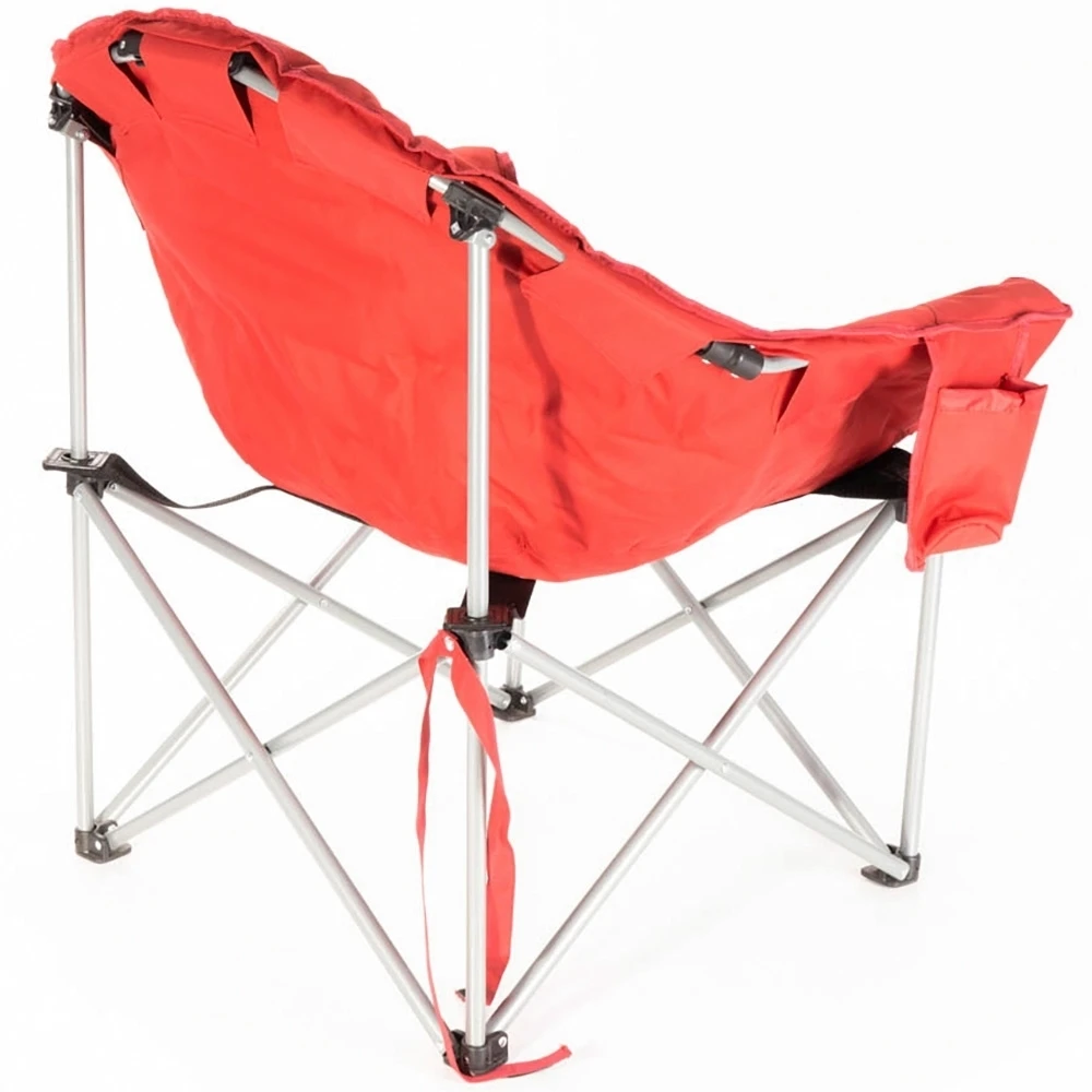 This extra plush bucket style seat features padding for you to sink into at the campsite and is constructed from durable 600D polyester. The steel frame provides a sturdy base to relax on and provides you with a 130kg weight capacity. You won’t have to haul yourself out of your chair to grab a beverage as it has a drink holder for convenience, and it folds up quickly into the included carry bag for transport.