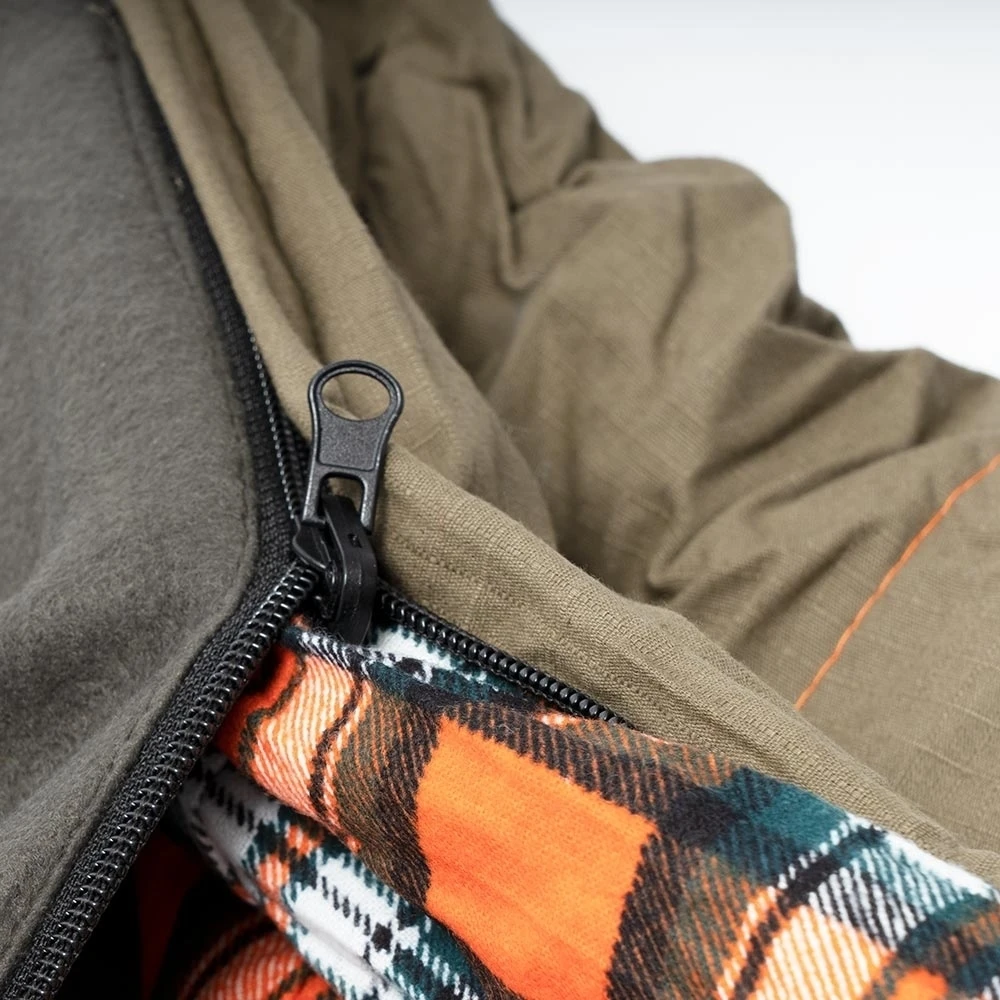 This sleeping bag features a comfort rating of 3°C, and a lower limit of -3°C, thanks to the two layers of T-Therm polyester fibres. The ripstop canvas shell provides unprecedented durability, and the contoured hood helps trap warmth inside the bag. It’s got a zip connect feature which allows two bags to be joined together to form a double, the inner storage pocket allows you to stash valuables safely, and the fleece liner can be removed for use as a summer weight bag.