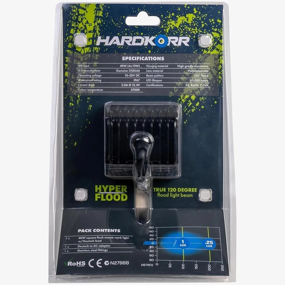 Light up the night anytime and anywhere, with the Hard Korr XDW Series 40W Square Flush Mount LED Hyperflood Work Light. The width of the flood beam on this thing has to be seen to be believed.